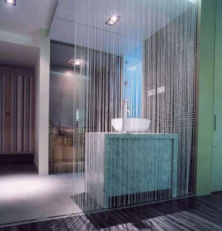 5、不銹鋼玻璃隔斷施工:適用于室內(nèi)及衛(wèi)生間、廚房隔斷。選用0.8——1.2CM不銹鋼做框架。選用0.8—1.2CM浮法平板玻璃或藝術(shù)玻璃。專用不銹鋼金屬件安裝。