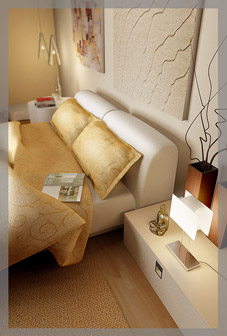 臥室的硬體部位,如天花板、地面及墻面等,都屬臥室的背景。背景的造型與色彩,直接為臥室的整個(gè)氣氛定下了基調(diào),同時(shí),這些界面裝修時(shí)材料的選用,也會(huì)決定整個(gè)臥室的裝修檔次與質(zhì)量,因此,臥室背景的設(shè)計(jì)與裝修至關(guān)重要。