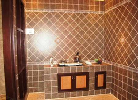 最好鋪貼啞光瓷磚,啞光瓷磚會(huì)使人感覺(jué)不好清洗,其實(shí)這是錯(cuò)誤的,品質(zhì)好的啞光瓷磚不但非常容易清洗,而且其細(xì)膩、樸實(shí)的光澤更能顯示出主人高雅的審美觀,令廚房間的品位更加和諧、自然。