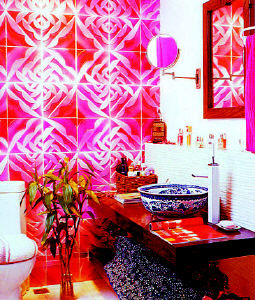 一般人都習(xí)慣在衛(wèi)生間鋪上白色瓷磚,再加上白色屋頂,成為一個(gè)潔白世界,其實(shí)若有條件的話,不妨采用彩色瓷磚,如貼上粉紅色的瓷磚,配上同色的浴缸與臉盆,那種逼人的羅曼蒂克情調(diào)很有暖意;若采用黃色系列,又會(huì)有一種如沐陽光的感覺。柔和的暖色調(diào)可增加空間的溫暖與舒適感。個(gè)性數(shù)碼磚是不錯(cuò)的選擇,與傳統(tǒng)的馬賽克相比,個(gè)性數(shù)碼磚的色彩更加豐富,圖案更加多樣,一片樹葉,一顆小石頭,甚至一瓣花都是它的設(shè)計(jì)素材。由于衛(wèi)生間空間一般都較小,稍作豪華的布置,花費(fèi)不會(huì)太多。
