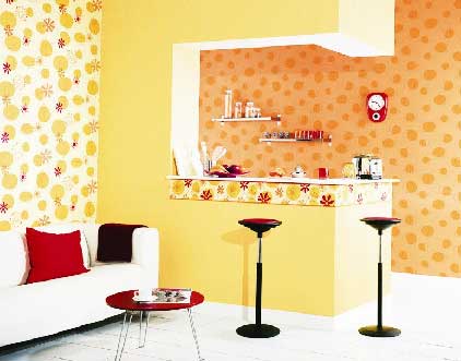 餐廳可以選擇浪漫田園風(fēng)格的墻紙,像清新亮麗的中花圖案、溫馨的小碎花圖案都適用于面積不大的餐廳。此外,橙黃色調(diào)的墻紙,還可增進(jìn)食欲。