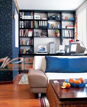 從事室內(nèi)設(shè)計的女主人將整個客廳的窗與散發(fā)著淡淡書香的敞開式轉(zhuǎn)角書桌安靜地安置于客廳一角?! ?/FONT>