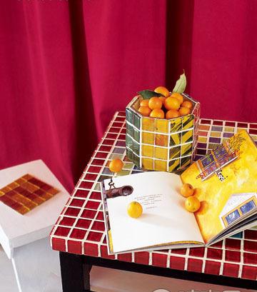 透明的馬賽克可以用來做燭臺,因為燭光能夠透過馬賽克朦朦朧朧灑出來,又不似透過普通玻璃那樣直白。還有實用的紙巾盒、花瓶都可以用馬賽克來制做,一樣的餐桌不一樣的風情。