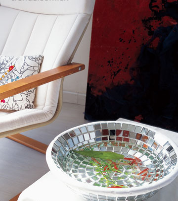 鏡面馬賽克在家中也有不同凡響的裝飾效果。把它貼在魚盆上,由于鏡面的反射,幾條魚仿佛變成了千百條魚,好不熱鬧。光照到魚盆上,反射到墻面、屋頂,星星點點,隨魚兒游動而閃爍,讓人驚喜不已。