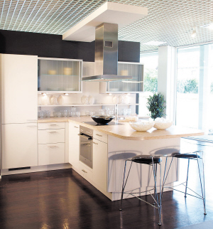 木質(zhì)、防火板、石材是櫥柜中的基本材質(zhì),在簡約主義的陣營中,更可見到后現(xiàn)代的新寵,如鋁、碳纖維、塑料、高密度玻璃等等,豐富了廚房世界的組合和諸多實用功能,如防水、耐刮、清爽、透光等等。