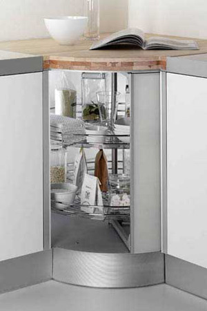 再巧妙的設計,最終都要實用。將幾個隔板設計成“平行線”狀,或高或低,再裝上一些CD架,再配以玻璃或者金屬的材質(zhì),雖談不上設計新穎,但是始終為消費者所厚愛。還有一種“排個頭”設計,小柜子套在大柜子里,用不上的時候,所有柜子都藏在最大的柜子里面。角柜以它多變的形式使角落這個邊緣空間被有效地開發(fā)出來,使儲物更方便,生活更有趣。