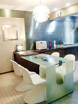 建議三:留出足夠回轉(zhuǎn)空間 餐桌椅在開(kāi)放式廚房間的擺放,必須注意要留出烹飪操作空間,當(dāng)餐椅拉出餐桌時(shí),其椅背距櫥柜要在一米以上,而一般的餐桌椅以一臺(tái)四椅為例 至少要占2米的寬度,再加上櫥柜的進(jìn)深,就要求開(kāi)放式廚房的長(zhǎng)或?qū)捯贿呏辽僖?.6米以上。