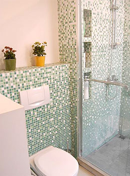 一般浴室的墻壁與地板是以貼白磁磚為主,但現在多元化的設計為一掃冷冰冰的印象,瓷磚的花樣顏色變得繽紛多采。如果你家的浴室是水泥墻,你可在墻面好好發(fā)揮你的創(chuàng)意喔!喜歡海洋,就漆成海藍、鑲上貝殼,做個海洋世界任你遨遊;喜歡森林,就造座森林吸取芬芳吧!衛(wèi)浴間周圍多用白色瓷磚,搭配上濃綠色觀葉植物,會覺顯眼悅目。雖然衛(wèi)浴間是濕氣和溫度甚高的地方,對植物生長不利,但可以選擇能耐陰暗植物,如羊齒類植物、抽葉藤、蓬萊蕉等,但要注意不要選有制類的植物,以防扎人。擺放的位置,要避免肥皂泡沫飛濺沾污。