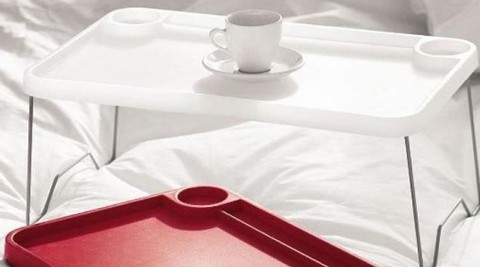 人人都說坐著沒有躺著舒服,如果可以將所有的工作都搬到床上豈不是美哉?懶人桌的出現(xiàn)可以說是將“懶人”的特性發(fā)揮到了極致。懶人桌有床上桌和床下桌兩種,前者是可以放置在床上的小桌,用戶可以將筆記本電腦、書本、水杯等一切物品放置其上,真正實現(xiàn)把客廳、書房、餐廳統(tǒng)統(tǒng)搬到床上的“懶人美夢”。同時,有的床上桌還增添了新工藝,有的桌面可以抬起,有的增加了推拉隔層,總之都是怎么方便、怎么順手就怎么設計。床下桌則是一種桌面可直接延伸至臥床上方的懶人桌,其桌腿部位的輪子使之真正實現(xiàn)了招之即來、推之即去。