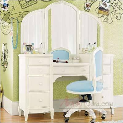 梳妝臺屬不常用家具,小些即可,而梳妝鏡大些則可開闊視野,“擴(kuò)大空間”,鏡子本身又不多占地方。