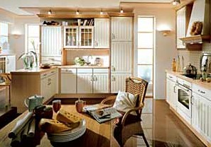 這樣的布置適合炒菜時(shí)間之外的日常家居。廚房成為廳的延伸,不僅空間延伸過去,活動(dòng)內(nèi)容也跟了過去。早晨,妻子在廚房弄點(diǎn)早餐,丈夫在沙發(fā)上看著報(bào)紙,兩人順便溝通一下今天的活動(dòng)內(nèi)容。沒有阻礙,更為融洽。晚間,一邊看電視,一邊照顧著灶火上的營(yíng)養(yǎng)粥。人總是易犯懶,尤其在一天的工作勞碌之后,渴望的是不再奔波,休息的同時(shí)做了家務(wù),豈不是更好。