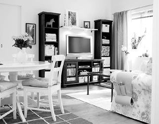 都市感十足的家居,用燈飾和小物件巧妙地將室內(nèi)空間分割。黑白相間的色調(diào),格調(diào)高雅的壁畫(huà)都彰顯了主人的品位??蛷d還有陽(yáng)臺(tái)上的合理布置,也能恰如其分地滿(mǎn)足都市午后一份怡然自得的心情。而且現(xiàn)在的每周四下午前往宜家就能得到設(shè)計(jì)師的免費(fèi)咨詢(xún),在別致的裝修風(fēng)格中更融入一些專(zhuān)業(yè)的布局。