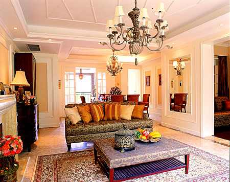 運(yùn)用斜坡式的山地優(yōu)勢(shì)進(jìn)行景觀規(guī)劃,讓外觀設(shè)計(jì)既表現(xiàn)出老上海的古樸風(fēng)味,又融合意式建筑的特色。室內(nèi)環(huán)境設(shè)計(jì)融合戶型結(jié)構(gòu)以及戶外的建筑特色,形成一個(gè)風(fēng)格融會(huì)貫通的生活場(chǎng)景。生活區(qū)結(jié)合建筑的優(yōu)勢(shì),將餐廳以及花園做成開(kāi)放式,連貫成擴(kuò)大的整體室內(nèi)視覺(jué)效果,在明顯分割區(qū)設(shè)計(jì)兩根高身羅馬柱。