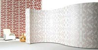 上個世紀(jì)60年代風(fēng)行美國的波普藝術(shù)是大眾文化與商業(yè)美術(shù)風(fēng)格中最具影響力的藝術(shù)流派。就詞義而言,波普就是大眾、流行的意思,它以流行的商業(yè)文化形象和都市生活中的日常事物為題材,采用的創(chuàng)作手法也往往反映出工業(yè)化和商業(yè)化的時代特征。Werner Berges設(shè)計(jì)的“藝術(shù)邊緣2005”壁紙就顯示了純正的波普藝術(shù)。畫面是一個笑得夸張而奔放的時尚女郎,以剪影的手法將頭像處理得簡單明了,在色調(diào)上或以濃度較高的紅、白、黑為主,或以明亮的藍(lán)、白、黃為主,帶有強(qiáng)烈的波普風(fēng)格和視覺沖擊力。這些壁紙本來都是用作戶外展示背景的,但因?yàn)閳D案很有個性,很多時尚人士會選擇用到室內(nèi)背景墻。