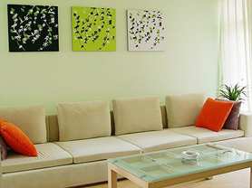 色彩對(duì)人情緒的影響很大,而一個(gè)人住就更易受環(huán)境影響了。因此,在選擇家具及裝修色彩時(shí),不要用灰黑色調(diào),而要選擇暖色、鮮艷的顏色,如橙色、黃色、綠色、藍(lán)色等,這樣能給人以愉快的感覺。家具則最好選擇原木色,窗簾、布藝沙發(fā)也選擇淺色系,用經(jīng)常更換不同色彩靠墊的方法使房間增色,也使其更具跳躍感。