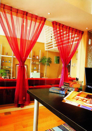 這套房子已經(jīng)達(dá)到中等戶型的上限——150平方米,客廳更是挑高達(dá)6米,這為設(shè)計師展示帶來了極大空間。樓梯下的書房采光不是很好,主人把整面墻換上了玻璃后,視線的擴(kuò)展讓狹長的客廳不那么狹長了,書房也更明亮。不想相互打擾的時候,拉上紗簾就可以。這種設(shè)計是不是讓你眼前一亮呢?