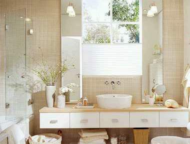 首先,這種超小衛(wèi)生間最好選用推拉門,磨砂玻璃材質(zhì)最為合適,因為普通木門都是向房間內(nèi)打開,這樣會占用不少空間,而推拉門則沒有這一問題。其次,在設(shè)計上衛(wèi)生間內(nèi)的物品要能和水直接接觸,比如鏡前燈應(yīng)選擇防水汽的;洗面盆、馬桶、手紙架、毛巾架等衛(wèi)浴用品盡量安裝在噴頭濺不到水的地方;墻面、地面的防水一定要做好,特別是地面的水平一定要做好,使得淋浴時噴出的水可以迅速從地漏排走;衛(wèi)生間內(nèi)的通風(fēng)條件要好,以便迅速排放潮氣。