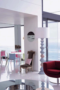 造型時(shí)尚的玻璃器皿和海邊隨處可見的石子被擺放在房間一角,處處體現(xiàn)了設(shè)計(jì)者的匠心獨(dú)具。