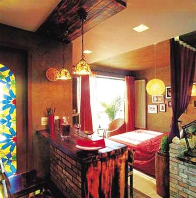 博古架和多寶格劃分出的通透玲瓏?yán)?,藏著猶抱琵琶半遮面的美麗,用它們來擺設(shè)現(xiàn)代雕塑別有一番韻味。碎冰紋的窗格,仿佛領(lǐng)口精致的繡花,卻能奇異地與金屬落地?zé)粝嗟靡嬲?。骨瓷花瓶飽含著暗香浮?dòng),使得馬克杯里的速溶咖啡也有了別樣的香醇……