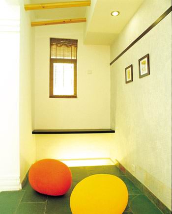 鮮明跳躍的紅、黃坐墊和兩副小裝飾畫(huà),把整個(gè)空間渲染得淋漓盡致。