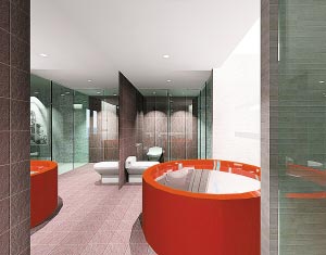 概要: 鮮艷奪目的紅色浴缸的大膽利用,讓本來平淡的浴室空間頓時(shí)活躍起來,富有個(gè)性時(shí)尚?! ∧闶欠駮?huì)覺得生活過于平凡,家居過于平淡。那么,何不讓家居適時(shí)地“色”一把,或許,僅僅是一個(gè)色彩的裝飾,就可以讓本來平淡的居室頓添風(fēng)采?! ∩庶c(diǎn)綴家居 大自然賦予了人類紅橙黃綠青藍(lán)紫,也讓生活充滿了五彩繽紛的活力。