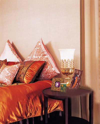 低調(diào)奢華的居室風(fēng)格,需要營造出層次豐富、色彩馥郁的視覺效果。華麗的色調(diào)加雍容的質(zhì)地最能表現(xiàn)低調(diào)奢華的氣質(zhì),有光澤感的面料和金棕、褐色系一起隨著光線的改變讓居室呈現(xiàn)出不同的表情。在整體布藝的材質(zhì)選擇上要十分注重做工精細、用料講究的高檔面料。 金色飾品是提升高貴氣氛的點睛之筆,在造型上,可以嘗試略顯繁復(fù)的鏤空或嵌絲設(shè)計。