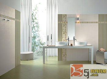 陽光型 今天的瓷磚已不再是素面朝天,或只是帶有一些簡單花紋,它們演繹著衛(wèi)浴間不同的風(fēng)格與個性。凈面瓷磚色彩愈發(fā)明艷,它雖然沒有任何花飾,但并不代表沒有設(shè)計(jì),在色彩上不再拘泥于黑、白,或一些淺淡的顏色。明麗的色彩被大膽運(yùn)用,艷黃、寶石藍(lán)、鮮紅、翠綠,不一而足,讓人們擁有更多想象與發(fā)揮的余地。