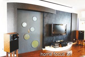 電視墻與臥室門連成一個(gè)背景墻,便于沙發(fā)擺放,在視覺(jué)上也很協(xié)調(diào)統(tǒng)一。