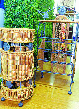 目前家裝市場上編制草制品所使用的材料,一般都是柳條、蘆葦和竹子,可以說是綠色環(huán)保的佳品。雖然材料都是一些植物,但是大可不必?fù)?dān)心它的耐用性。由于工藝的改進(jìn),現(xiàn)在的草器和藤器除了強(qiáng)調(diào)裝飾性之外,實(shí)用性也大大加強(qiáng)了。像一件蘆葦編制的小書架,放二三十斤重的書完全不成問題。一般的草具顏色都比較淺,大多是草的本色、淡黃或米色。這樣的色調(diào)自然給人一種清新爽潔的感覺。但它同時(shí)也非常易臟,一點(diǎn)浮土就會(huì)顯現(xiàn)無余。所以,要保持這種清新的感覺,經(jīng)常擦拭草具是非常重要的。在清潔時(shí),切忌不要用濕布,只要干凈的干布把浮土撣干凈就可以了。