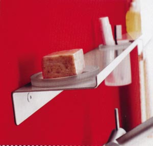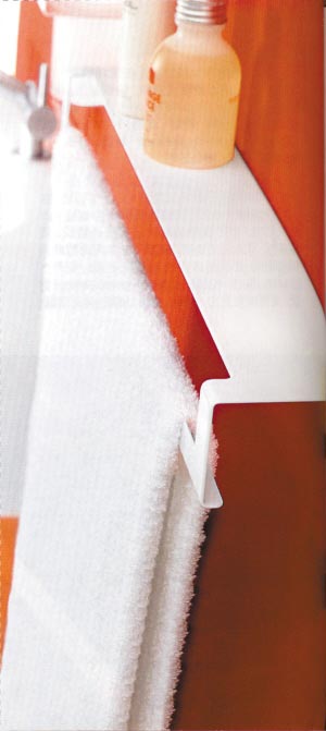 面盆上方安裝置物擱板:無論是在面盆表面還是在浴室柜的臺(tái)面上,放過多的清潔衛(wèi)生用品都會(huì)顯得雜亂無章,而且容易碰倒,因此不妨在面盆上方貼墻的位置釘上10厘米寬的擱板,只要能放得下化妝品、刷子、牙缸等便可以了。