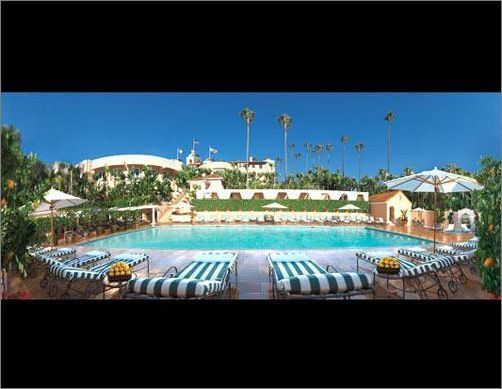 貝弗利山酒店的游泳池與棕櫚樹和宜人亭臺連成一片,素以好萊塢名人的人間天堂著稱,美麗的景色常常讓這些人流連忘返,他們自由舒展地依在躺椅上,清風拂面,暫時忘記塵世的紛擾和憂愁。貝弗利山酒店的游泳池周圍樹起了一道圍欄,使來此感受日光浴的名人們不必擔心受到小報記者騷擾,安靜地度過自己的隱秘時光。