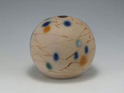 這種由江蘇丹陽姜氏彩陶有限公司生產(chǎn)制作的姜氏現(xiàn)代彩陶實(shí)際上包括了幾種類型,其中主要有彩釉陶、無光釉陶、玉珠釉陶、刻花陶和色泥彩繪陶等,手法多樣,種類繁多,給人留下的印象確實(shí)是多姿多彩,變化萬千,具有現(xiàn)代審美特點(diǎn),充滿新意,盡管有的作品還在嘗試階段,還不夠成熟,還存在著明顯的缺點(diǎn),但就整體而言,豐富多彩的現(xiàn)代彩陶藝術(shù)已經(jīng)構(gòu)成了一副美麗的圖畫,使人欣賞之后感到愉悅,看到了美的創(chuàng)造。