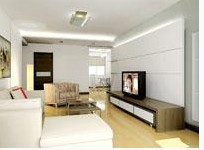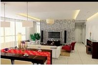 設(shè)計說明:清新淡雅的色彩和簡單的結(jié)構(gòu),沒有過多的修飾,簡潔干凈。功能性突出的空間,利用了壁紙墻面與簡潔的直線吊頂拉開了空間的層次,使之更為大方而有力度。選用布藝沙發(fā)及柔軟的裝飾小品柔化了空間,形成了個性化、簡約時尚的生活品質(zhì)。
