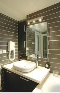 黑色與潔具的白色搭配可以減少純黑色的收縮感。鏡子的運用大大加強了空間的視覺感受和通透性,這樣無論從作用、生活功能還是外觀上都是一流的。