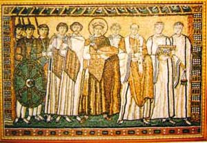 早在十六世紀(jì),玻璃制造家發(fā)現(xiàn)了如何制造很多不同色調(diào)的玻璃時(shí),有些馬賽克工作坊制造了多到一萬(wàn)種不同色調(diào),于是他們開(kāi)始模仿畫(huà)家,馬賽克成為他們手中的“固體”顏料。