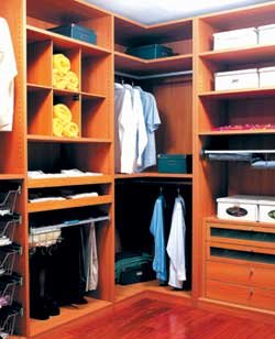 特點(diǎn):疊放的褲子會(huì)有折痕,而掛褲架卻能讓褲子不留一點(diǎn)痕跡,因此衣帽間中的掛褲架是必需的。把內(nèi)衣放在寬大的透明抽屜里,很整潔哦。