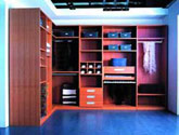 因?yàn)榭臻g本身較小,特別要注意的是需留出一定的活動(dòng)余地,不要一味貪圖衣柜的面積。另外,還要留出放穿衣凳的位置,方便更換下裝和鞋子,可以把穿衣凳放在柜子下方,用時(shí)拉出,穿衣鏡也可和某一柜門(mén)結(jié)合起來(lái)。
