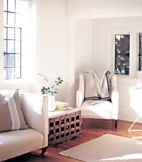 另外一個(gè)功不可沒的物件是鏡子,它在臥室的設(shè)計(jì)中真的是一個(gè)很神秘的角色。鏡子不但可以增強(qiáng)臥室燈光亮度,而且還有增大房屋空間的作用。當(dāng)然,千萬不要忘記鏡子本身的作用,它可要為你每天出門前的形象嚴(yán)格把關(guān)。可以考慮做一個(gè)推拉門,把鏡子鑲嵌在門上,房屋的面積會(huì)因此變?yōu)樵瓉淼膬杀?。如果戶型的設(shè)計(jì)中有一個(gè)令你不滿意的狹窄走道,那么鏡子就可以鑲嵌在這里,這樣可以在視覺上增加亮度、擴(kuò)大空間。