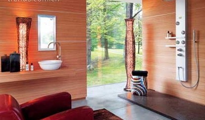 充滿情調(diào)的衛(wèi)浴間:衛(wèi)浴間的色彩通常比較單一。選擇有色透明材質(zhì)制造的衛(wèi)浴間則別有一番風味,將這樣的衛(wèi)浴間安裝在自己的家里將會成為一道靚麗的風景線。