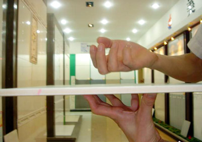 其次,再取出一片磚,兩片對齊,中間縫隙越小越好。如果是圖案磚必須用 四片才能拼湊出一個完整圖案來,還應看好磚的圖案是否銜接、清晰。然后將一箱磚全部取出,平擺在一個大平面上,從稍遠地方看整個效果,不論是白色、彩色或圖案都應色澤一致,如有個別磚色深淺不一,也會很難看,影響整個裝飾效果。這叫色差,是不允許的,選購時一定要看好。