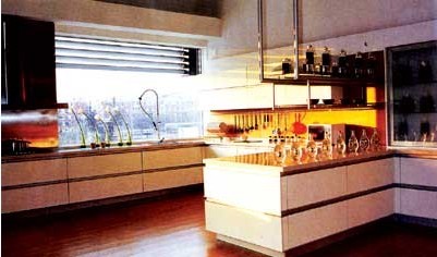 全進(jìn)口廚具。價(jià)格昂貴,但無論是材料還是設(shè)備都是非常不錯(cuò)的。一種從日本進(jìn)口的整體廚具,長(zhǎng)3至44米,包括上面的吊柜和下面的櫥柜及所有的設(shè)備(脫排油煙機(jī)、煤氣灶、烤箱、水池、龍頭、餐具架等),價(jià)格從3.4萬元到3.6萬元左右。這類廚具材料高檔,注重環(huán)保,也方便清洗。對(duì)一些小的方面,如吊柜上的餐具架,可能會(huì)使身材不高的女士使用起來吃力,于是,安裝了手拉籃,可根據(jù)人體高度先平移,后上下移動(dòng)。安裝在櫥柜的轉(zhuǎn)角處的櫥門,配有一種可以開到180度的鉸鏈,放在轉(zhuǎn)角櫥內(nèi)的東西放進(jìn)拿出不受限制。最合理的要算脫排油煙機(jī)了,這個(gè)機(jī)器在內(nèi)襯板上有4個(gè)40厘米長(zhǎng)10厘米寬的吸油煙網(wǎng)罩,吸污功能強(qiáng),而且面廣。
