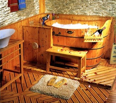 3、選質(zhì)量:做工好的浴桶外表光滑,手感細(xì)膩,板與板之間、桶與箍之間接合良好,這樣的浴桶裝水后才不容易變形。
