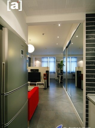 除了浴室和臥室這類獨(dú)立的私密性較強(qiáng)的活動(dòng)空間之外,幾乎所有日常活動(dòng)都是在這間寬大的開放空間中進(jìn)行。這種空間的魔術(shù)變化秘訣在于其空間的“空”,因此家具和裝飾品的布置都保持在最小程度。