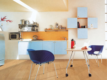 居室的采光條件也限制了地板顏色的選擇范圍。采光良好的居室自不必說,可隨意挑選;而樓層較低,采光不充分的居室則要注意選擇亮度較高,顏色適宜的地板,盡可能避免使用顏色較暗的地板。另外,色彩會影響人的視覺效果,暖色調(diào)為擴張色,冷色調(diào)為收縮色。所以,面積小的房間地面要選擇暗色調(diào)的冷色,使人產(chǎn)生面積擴大的感覺。如果選用色彩明亮的暖色地板就會使空間顯得更狹窄,增加了壓抑感。