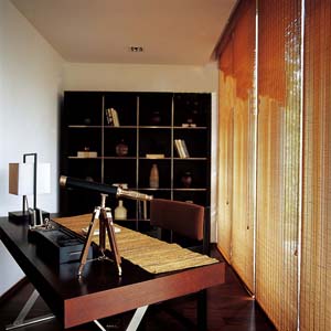 采用細(xì)竹片編織的窗簾既保證了遮擋視線的基本功能,同時又輕盈舒爽,讓窗外的明媚陽光和婆娑樹影映入書房,強(qiáng)調(diào)了空間的文化氣息,也在一種低調(diào)中,呈現(xiàn)出了某種奢華。