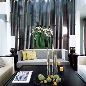 虛實是中式設(shè)計重視的又一個觀念, 典型的中式空間講究“隔斷”,而這種隔斷,目的并不在于要把空間切斷,而是一個過渡、一個提醒、一個指示,常常“隔而不斷”。碧紗櫥、屏風(fēng)、博古架、帷幕,不但用來“隔而不斷”,還有很強(qiáng)的裝飾性。譬如如今流行的造型墻、活動墻之類的元素,很久以前就被中國人運用自如了;還比如,墻面的留白,家具的虛功能和實體形的設(shè)計等,都是傳統(tǒng)中式設(shè)計中的精髓。在新中式中依舊強(qiáng)調(diào)“留白”,例如在一些轉(zhuǎn)折過渡空間里運用“留白”,可以使該空間有更大的彈性。