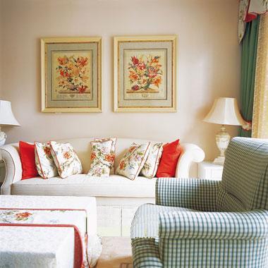 鄉(xiāng)村風格的顏色搭配一定要謹慎,否則就會雜亂,主次不分,最好以一種花朵為主。