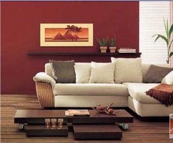 在色彩方面,采用了黑、紅、白、黃四種色調突出了厚實、莊重的感覺。復式樓梯的設計也符合簡約造型,簡單而不張揚,配以暗紅色的墻壁又不十分“搶眼”。使整體空間更趨合理,一樓到二樓的過渡也更加自然。