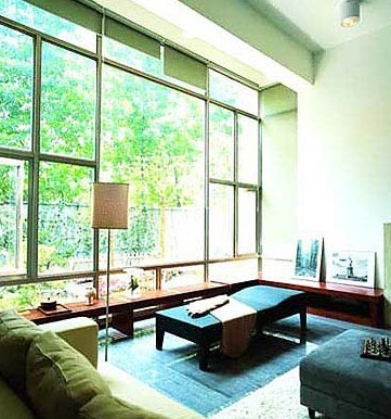 客廳1:躍層的風(fēng)情不言而喻,大膽的顏色調(diào)配,簡(jiǎn)約而又有風(fēng)情。設(shè)計(jì)師在電視墻的上方,用木線條作為配飾,既起到吸音的效果,又達(dá)到很好的裝飾作用。有心的主人采用了板狀櫻桃木作為起居室的地面飾材,達(dá)到了美觀的效果,又具有安全、防滑性和不怕重壓的特性,所以大多數(shù)客戶在起居室選用木質(zhì)地板。