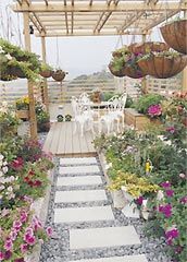 頂樓地面多為水泥地,感覺光禿禿的;露臺則多為磁磚材質(zhì),不用多加修飾。一般來說,要方便清理、維護,最好盡量維持地面原貌,才能減少積水、臟污的機會。不過若真想擁有花園的整體感,倒是可利用拆組方便的鋪面材,如木板、石片,景觀用的小石子則不建議大面積鋪上。而墻面即使不掛盆栽,加上籬笆也能修飾整體景觀。